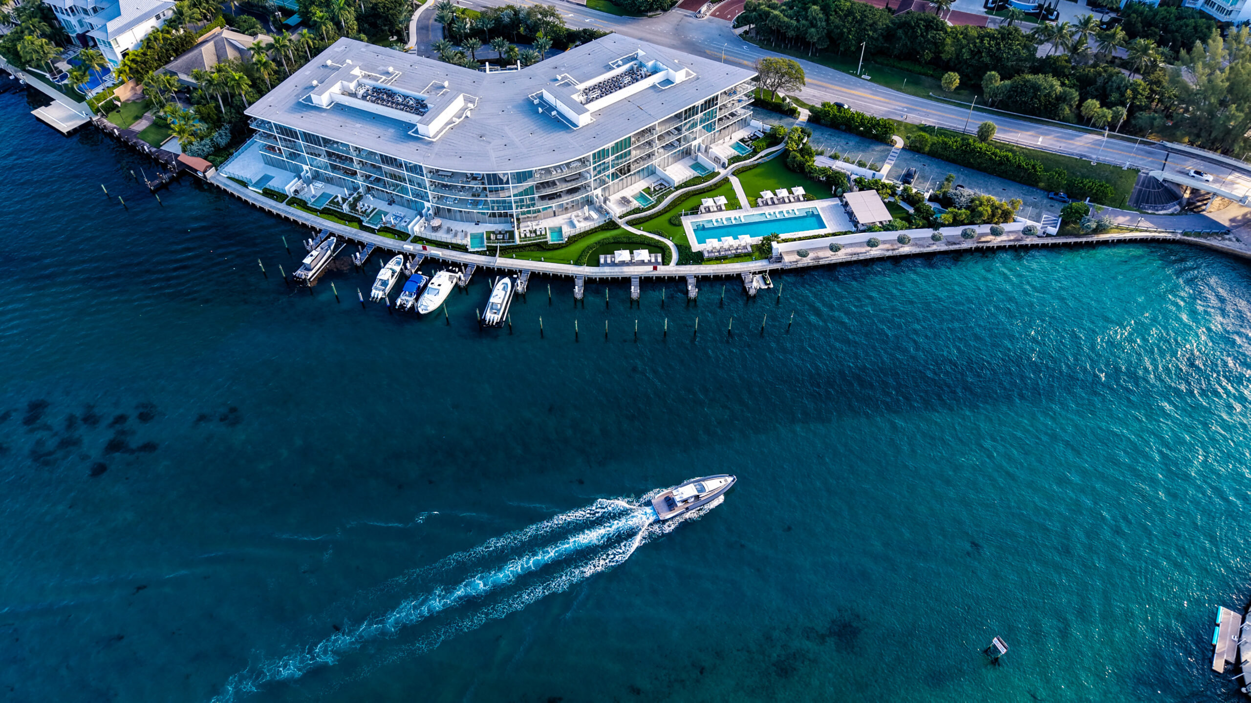 Ultra-luxury, house-scale residences on Lake Boca. Private, glass-heavy architecture, very few units, and a “single-family home without the maintenance” feel.